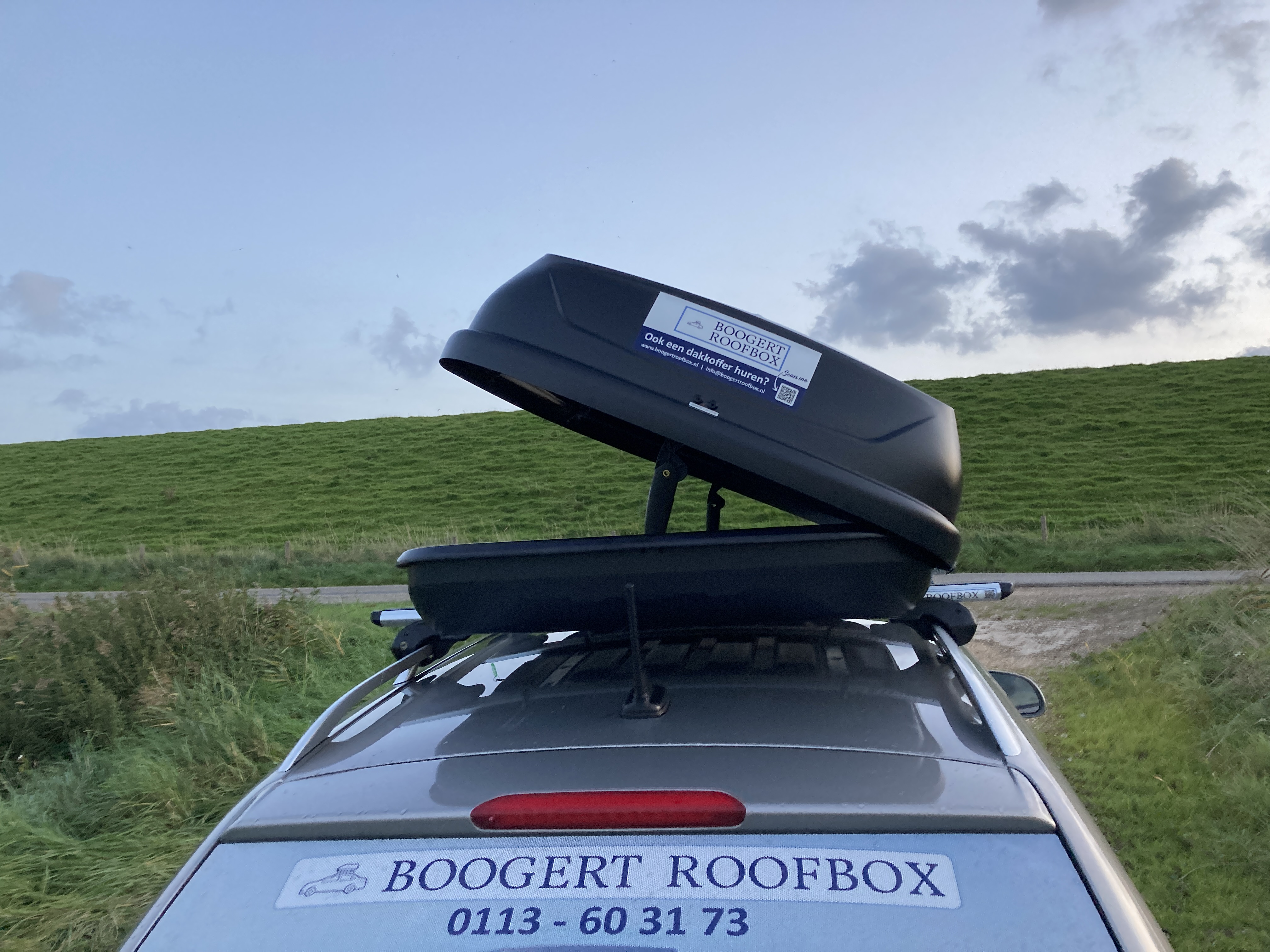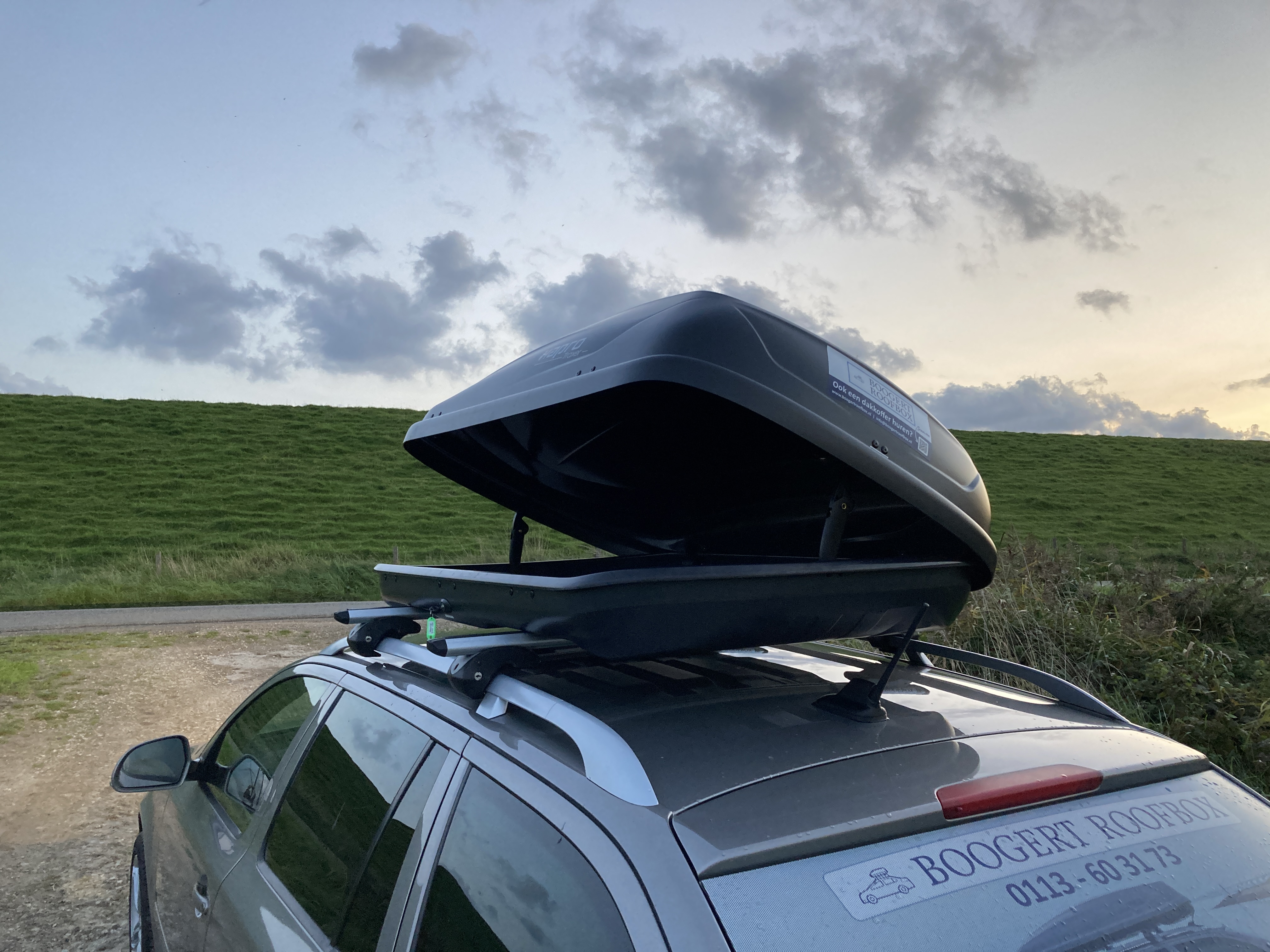 De C-370 liter dakkoffer is een ruime en moderne dakkoffer uit ons assortiment. Handig is dat je deze aan beide kanten kunt openen. Bekijk de foto’s en het filmpje hieronder om een goed beeld te krijgen van deze dakkoffer. Uiteraard is de dakkoffer afsluitbaar, zodat je waardevolle spullen veilig opgeborgen zijn. Heb je geen eigen dakdragers? Geen probleem, je kunt deze er bij ons eenvoudig bij huren. Onze dakdragers zijn ook voorzien van een slot, zodat ze veilig op je auto blijven zitten.
